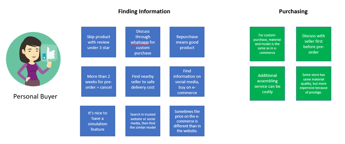 Their concerns, problems, and how they feel when buying furniture or interior design can be summarized through this affinity map:
